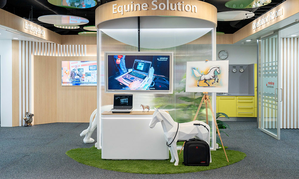 The center features an immersive showroom showcasing digital diagnostics, smart management systems, and specialized solutions for a full view of intelligent veterinary workflows.