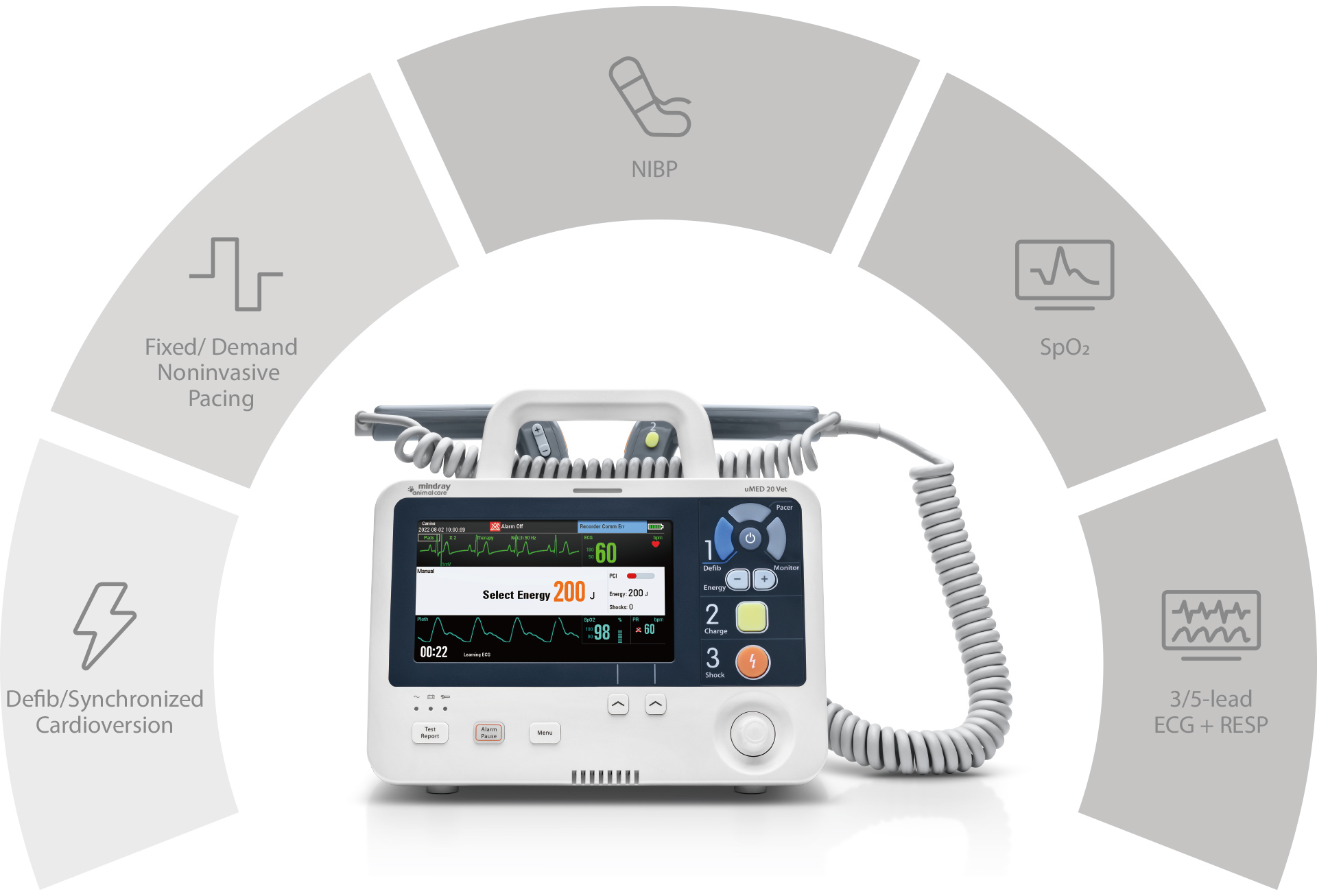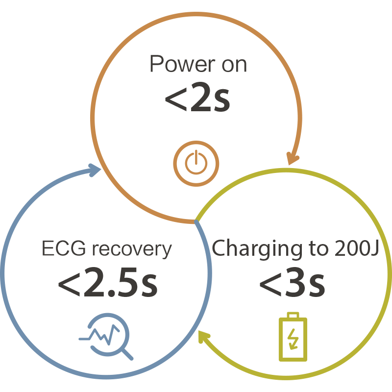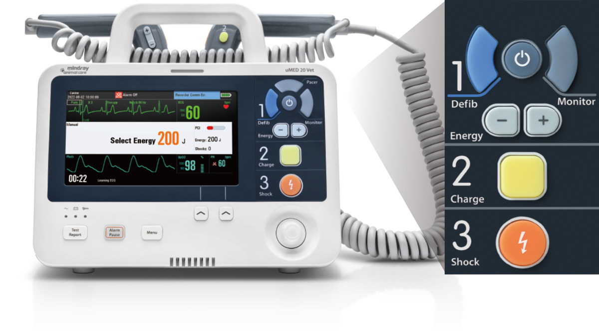 Equipped with QShockTM technology, uMED 20 Vet provides an ultra-fast defibrillation experience. It only takes <7.5s from power on, charging to ECG recovery, helping to increase the chance of a successful defibrillation.